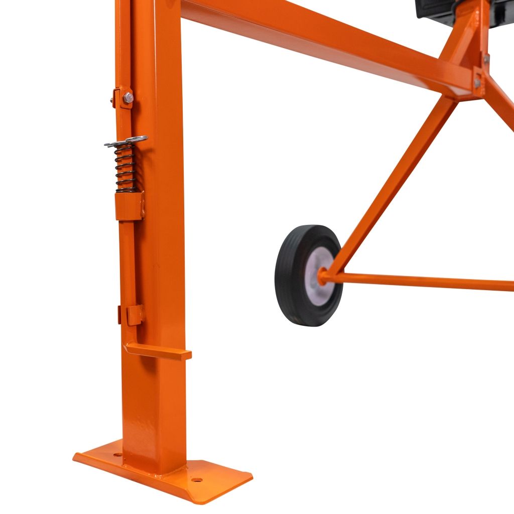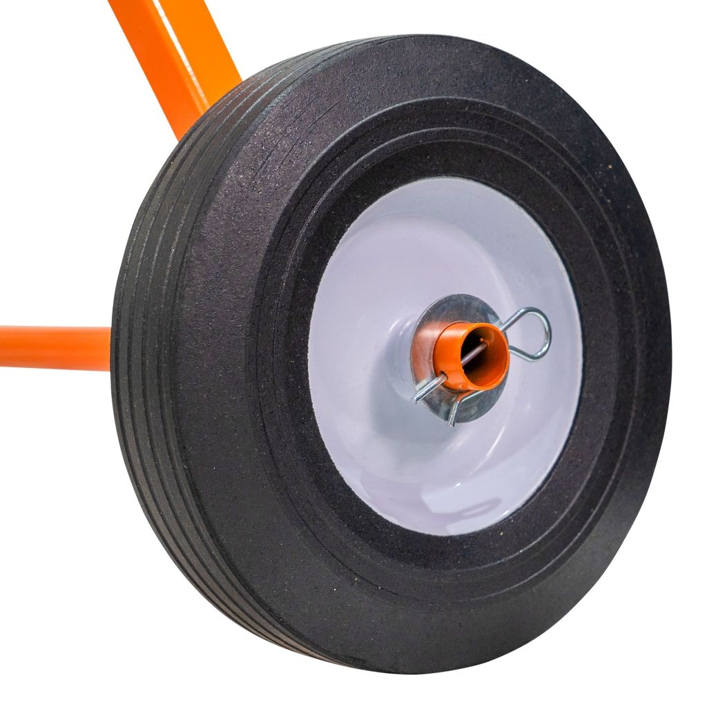 Pedala de picior oferă un control ergonomic asupra basculării cuvei, în timp ce roțile din cauciuc cu jante metalice de 10 inch facilitează deplasarea pe suprafețe diverse.