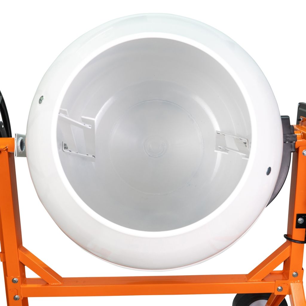 Cu un volum net al cuvei de 200 litri, betoniera permite operarea unor cantități mari de material într-un singur ciclu de lucru, optimizând timpii de execuție și minimizând efortul manual.