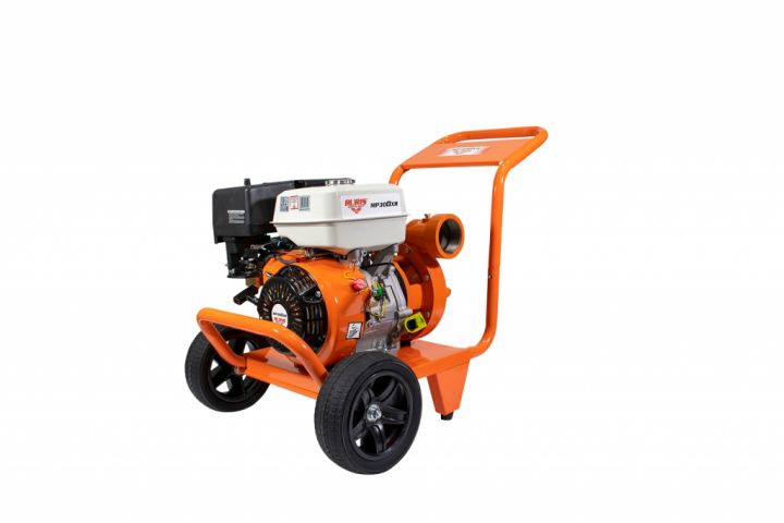 Motopompa este dotată cu roți și un mâner ergonomic pentru a facilita transportul la locul dorit, asigurând astfel o manipulare ușoară a utilajului.